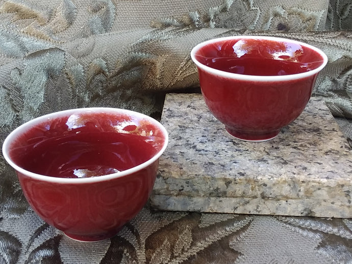 Ruby Red Cups Glazed Ceramic Tea Cups * Set of 2