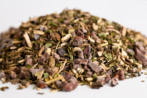 Kava Koko is an attitude adjustment in a cup! This is one of our flagship products and bestsellers. Our Kava is sourced from Vanuatu and is of very high quality. Active nervine agents in the root of the kava plant have been used by the people of the South Pacific as a social relaxant for centuries. Kava relaxes the body without slowing down the mind and promotes sociability. Our cacao nibs are sourced from Theo Chocolates in Fremont; they are organic and fair trade and provide flavor and texture to this drink. Cacao is full of Theobromine, thought to be the ingredient in chocolate that make one feel as though in love. Finally peppermint is added for its flavor and mild stimulating effects. The end result of blending these three ingredients is greater than the sum of their parts.